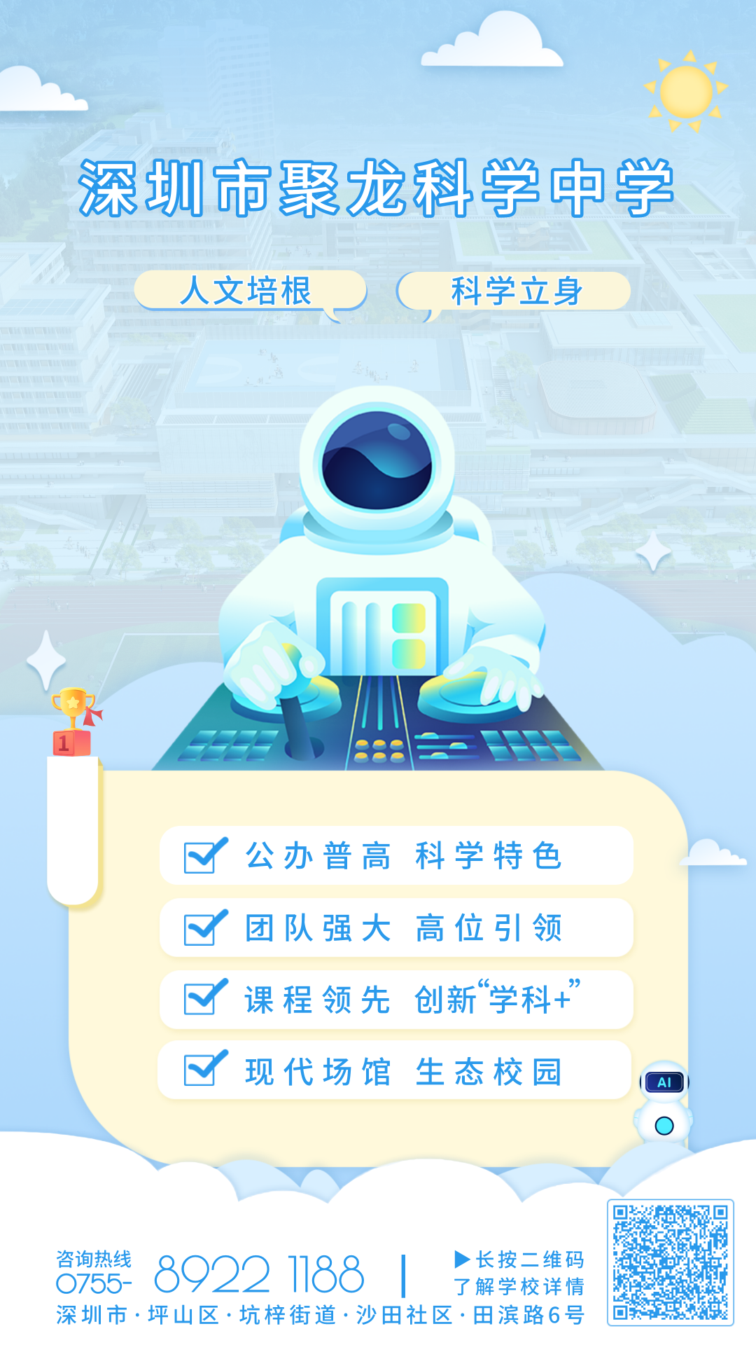 读特客户端·深圳新闻网2022年4月26日讯(记者 杨涛)近日,记者从坪山区教育局获悉,深圳市聚龙科学中学(原规划名“深圳市第十四高级中学”)将于2022年9月开学,面向全市录取1000名首届高一新生。