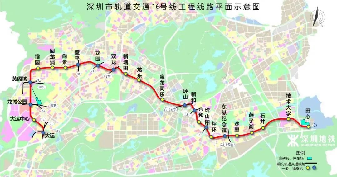 深圳地铁16号线全长约29.2公里,起于龙岗大运,止于坪山田心,是深圳建设交通强国城市范例的重点工程,建成后将实现龙岗、坪山等片区内部的交通畅通,加强区域交通互联互通,极大地方便市民出行,支撑深圳向东部拓展。