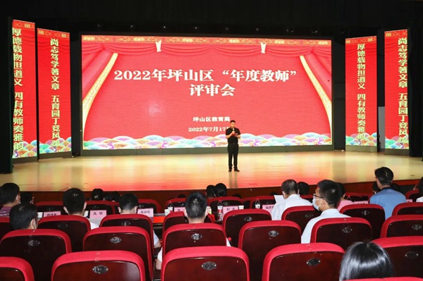 日前,2022年坪山区“年度教师”评审在坪山高级中学举行。来自11所学校的11位“年度教师”候选人,经过两轮紧张激烈的PK,通过个人展示、演讲环节以及现场答辩,给现场评审及观众带来了一个个有温度、有高度、有深度的坪山教育人的故事,充分展示了新时代坪山教师的风采!