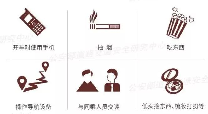 开车时常见的导致分心驾驶的行为有: