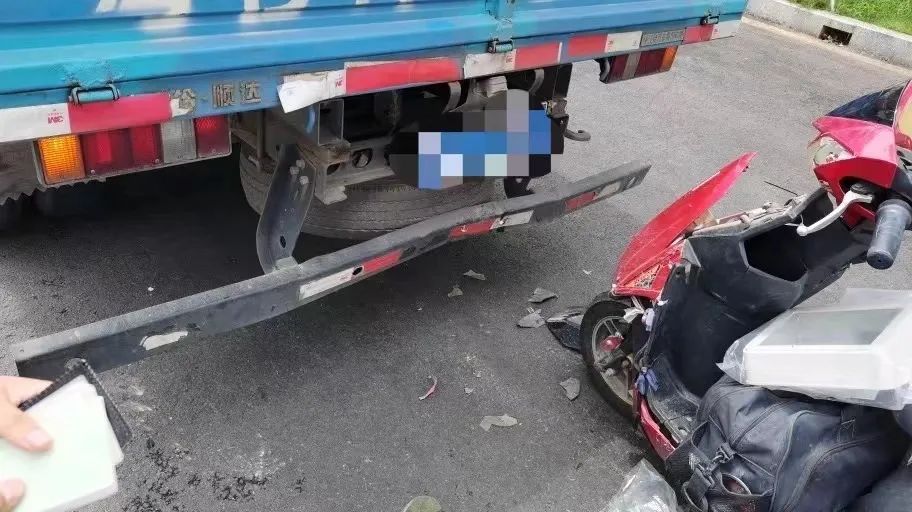 看哪儿呢?砰!一男子骑电动车不专心,迎头追尾货车……
