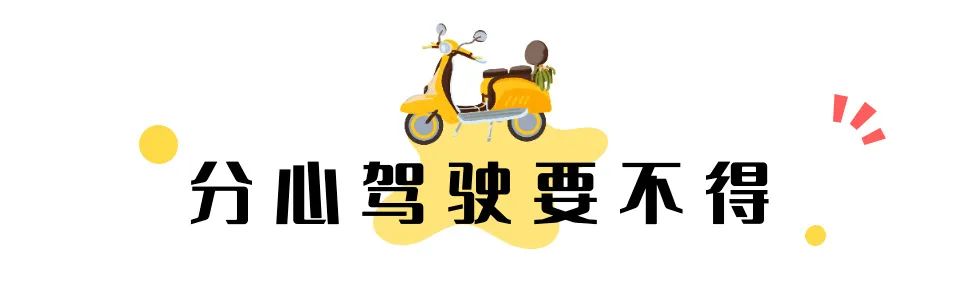 骑行时看手机、单手/脱手骑车、手拿东西骑车、攀附其他车辆、听音乐等,都是分心驾驶的行为。此类行为会影响驾驶员的正常操控及判断,如果遇到突发情况,驾驶员将无法及时反应,极易引发交通事故。
