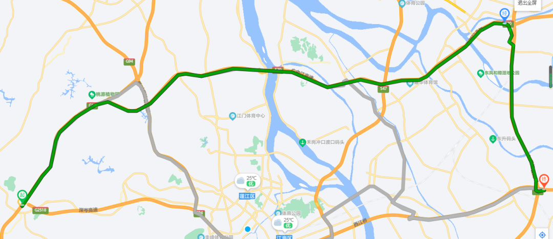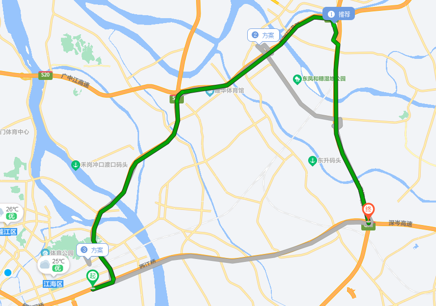 路线二经广中江高速公路—广珠西线高速公路—珠三角环线高速公路。
