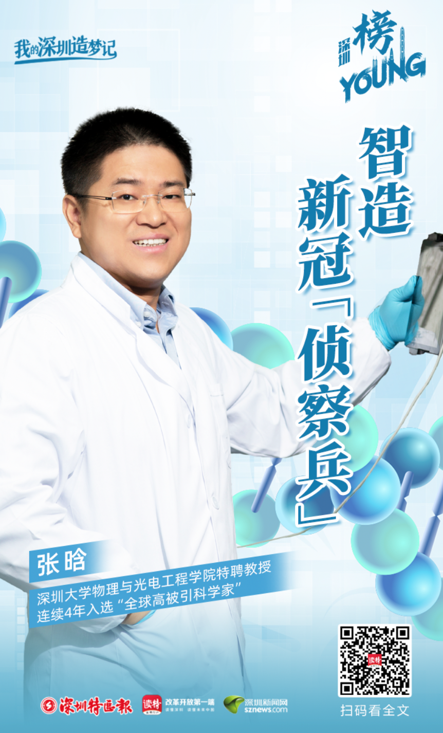 在实验室里,张晗走路很快,几乎是“奔跑”的姿态,然而当盯着实验器皿或查看数据时,他的目光总是久久不曾移开,整个人仿佛被定住。近年来,他连续4年入选“全球高被引科学家”,是目前最年轻的美国光学学会会士获得者,今年,他获得了第二十四届“广东青年五四奖章”。一个个“高光”时刻的背后,是张晗的脚踏实地,勇攀高峰,潜心科研“无人区”换来的。