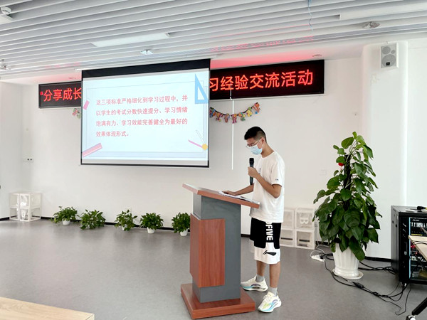 学生代表杨周宸欢多次荣获国家级、省、市、区各类奖项和荣誉,他以如何备考为主线,串联考法总结、难点突破、注意事项,从如何看待目标、如何细心做题、针对备考调整心态的问题三方面入手,分享了自己的初中生活:一是要树立目标,目标的意义;二是做题要细心,遇到简单的题,要认真细致地对待;三是要劳逸结合,调节情绪、调节状态,休息不等于浪费时间,找到自己的节奏正确地休息。