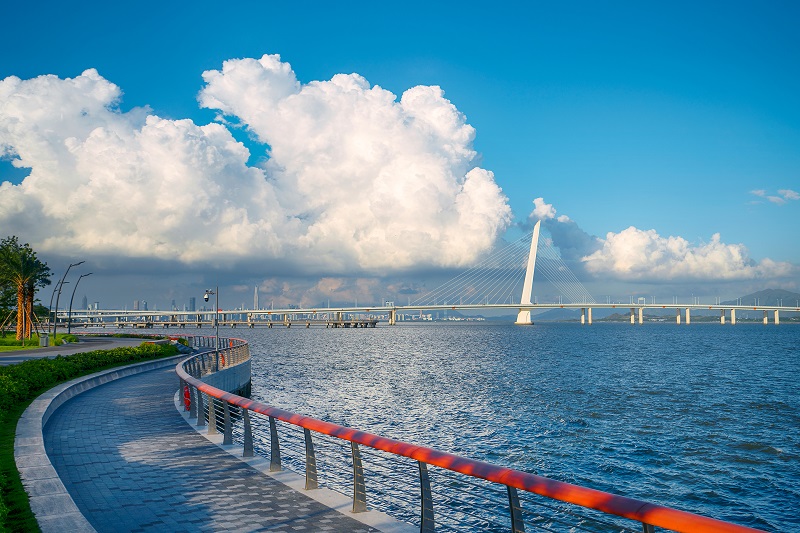 在塘朗山郊野公园登高望远,向南可俯瞰深圳湾、香港北部片区,向北可远眺西丽科教城、龙华、宝安片区,眼前郁郁葱葱的山林、远处中心城区地标建筑映入眼帘。在大沙河生态长廊,其上游高校云集,自然生态美景与校园人文气息相映成趣,中游与周边绿地串联,在城市腹地中营造出一片绿色森林,下游则有活力水岸,水上赛艇、龙舟赛事等丰富多彩的水上活动。进入深圳湾公园便可拥抱大海,向东可徒步至红树林保护区,向西可徒步至蛇口,从山到河再到海,一次赏遍,山海相连的视觉通达让人心旷神怡。
