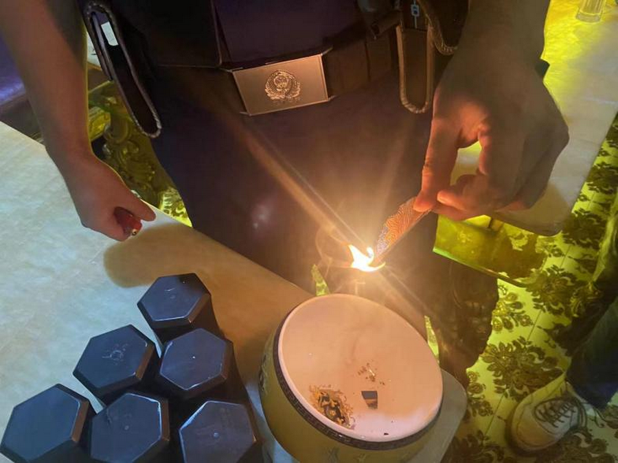 存在隐患:该场所包间黑爵房、帝王房顶棚、墙面采用可燃布质壁纸材料装修。