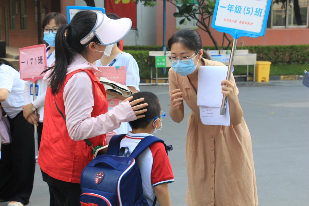 一年级“小萌新”在老师们的指引下找到班级。(翻身实验学校(西校区)供图)