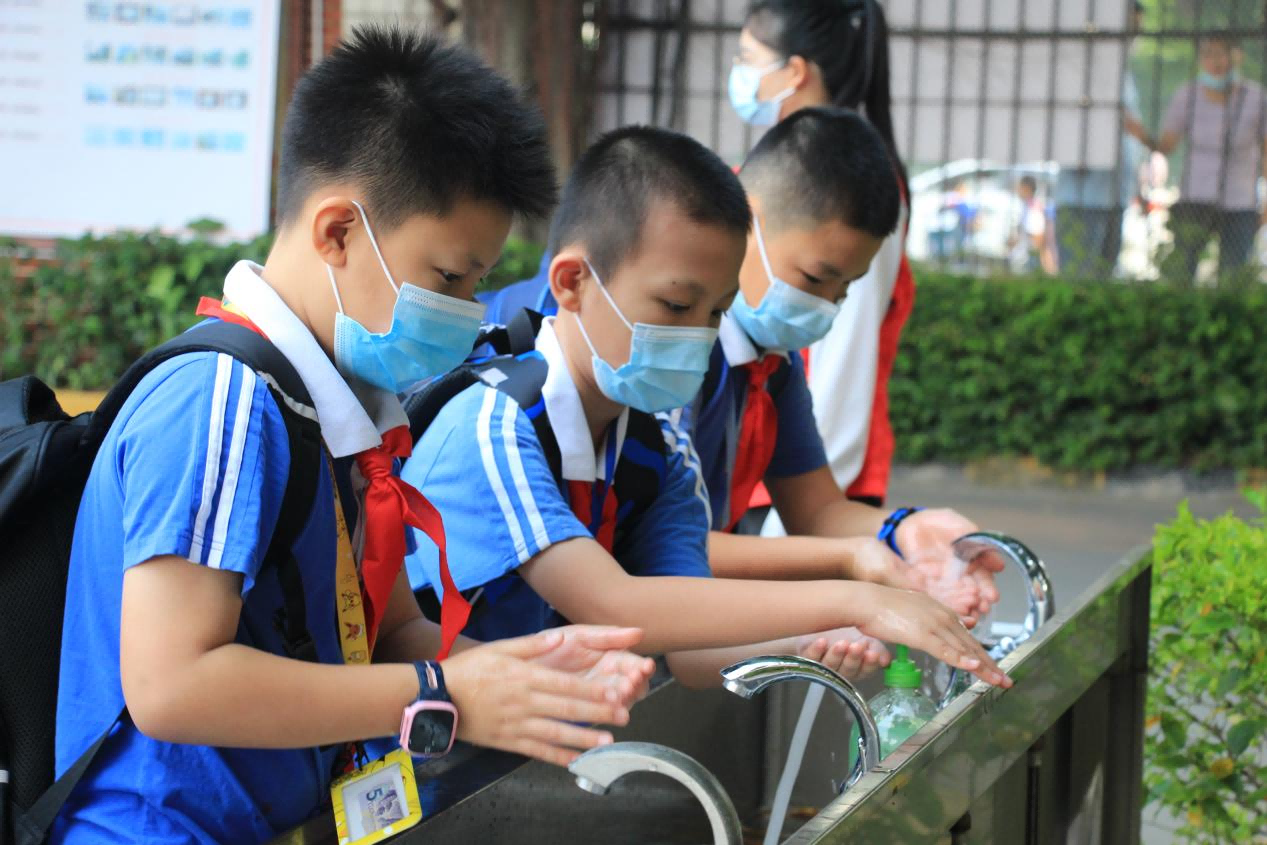 学生入校后洗手保持干净卫生。(翻身实验学校(西校区)供图)