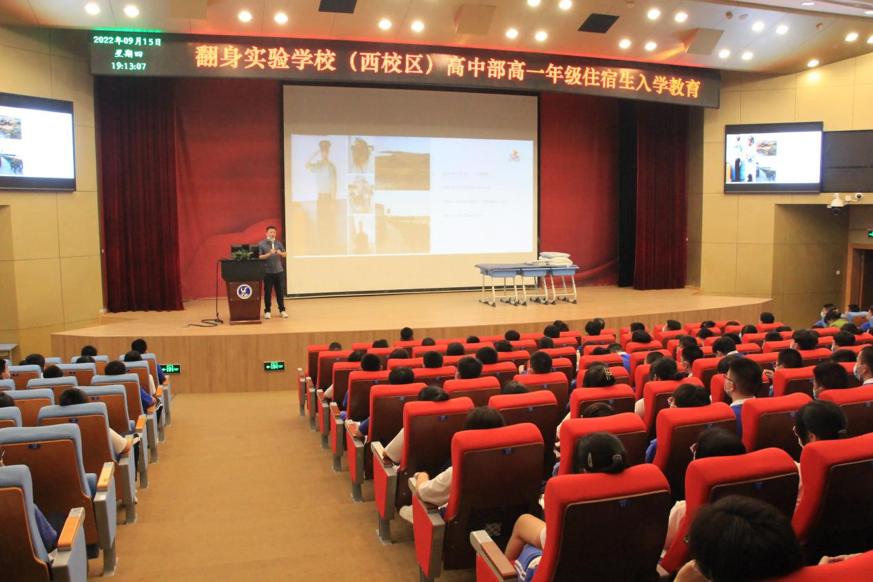 为帮助高一新生更好地适应学校住宿生活,学校开展高一新生入学教育,从适应新环境、与老师同学建立良好人际关系、拒绝手机游戏等方面提出建议和要求。(翻身实验学校(西校区)供图)