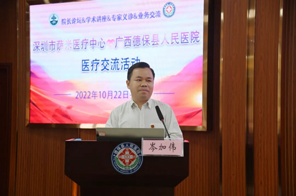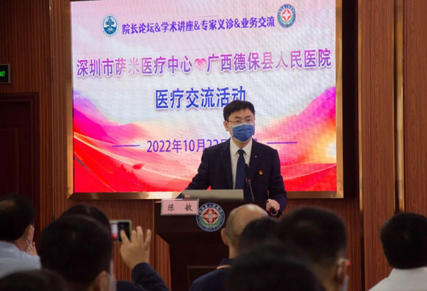 正是为了把深圳一线城市先进的医疗理念,尤其是萨米医疗中外合作运营的创新式理念带给德保,10月23日,萨米医疗专家团队在德保县人民医院会议室内,进行了院长论坛、设备捐赠、学术讲座等一系列的医疗交流活动。