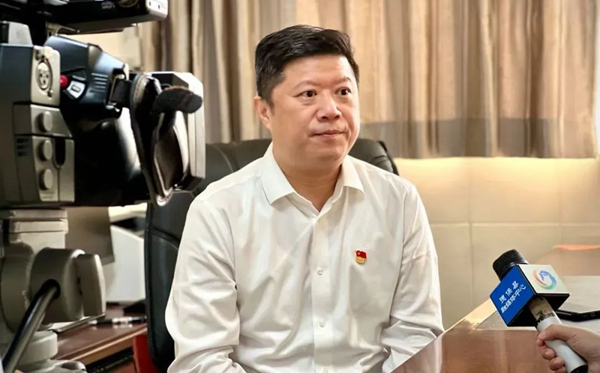 图为萨米医疗王诚书记接受德保县融媒体采访