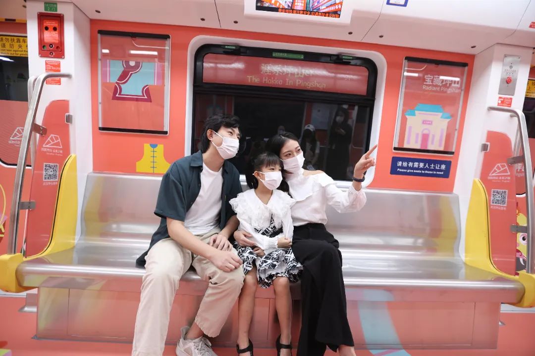 这是在地铁14号线开通当天,坪山开出一趟创意专列。专列通过形象鲜明、色彩丰富的设计将坪山产业、地标、文化、生态等各种代表性元素融进8节车厢。车厢洋溢着青春、活力的气息。