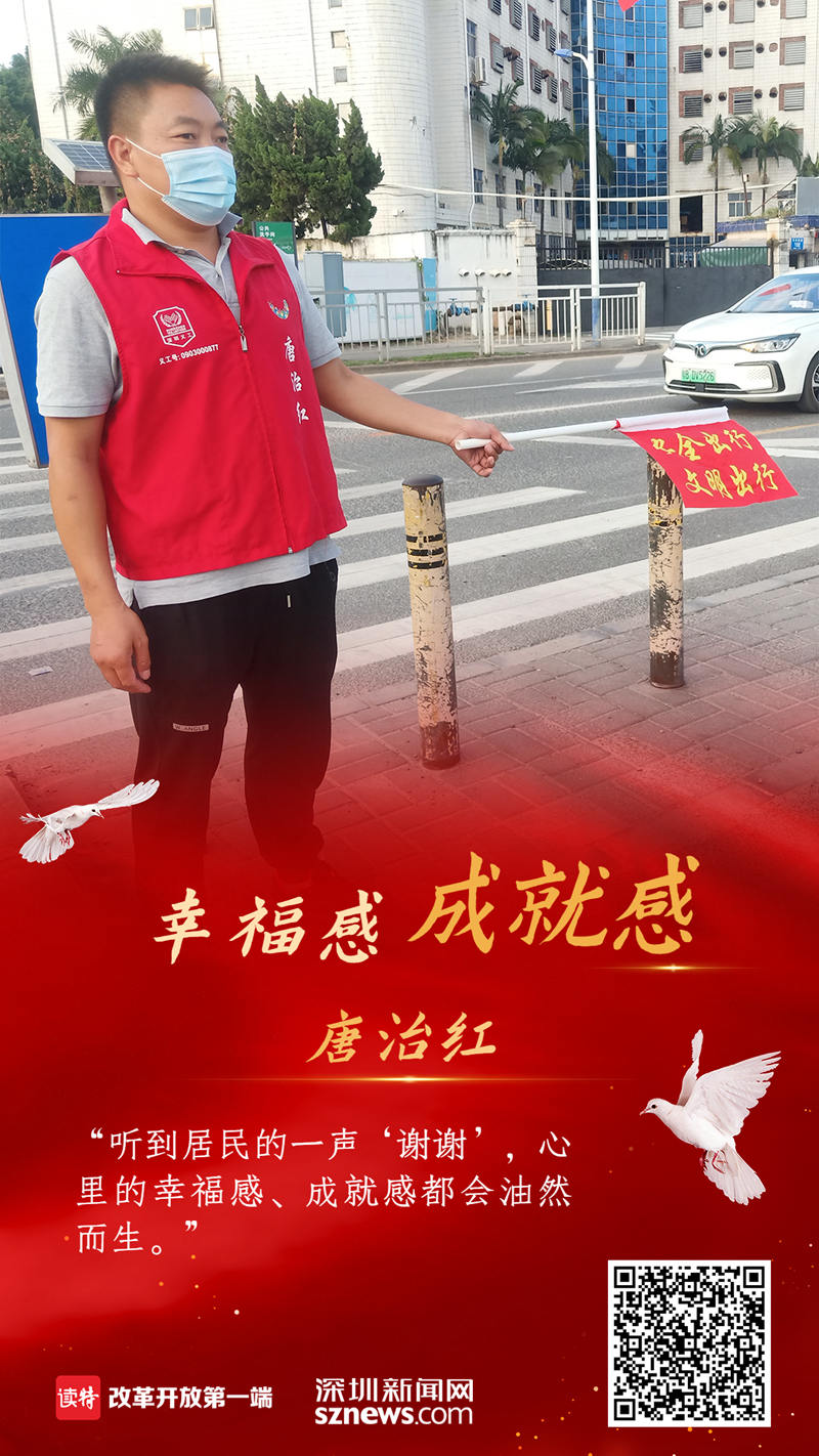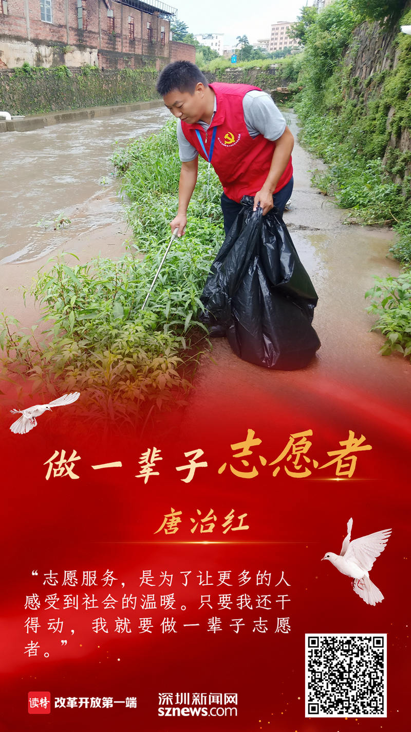 他就是深圳市坪山区龙田街道龙田社区的一名普通志愿者唐治红,十年来,他累计志愿服务总时长达9179.9小时。