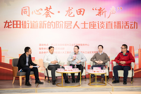 读特客户端·深圳新闻网2022年12月14日讯(记者 张金 通讯员 柳元)为推动新的社会阶层人士进一步增进共识,更好团结引导新的社会阶层人士服务经济社会发展、贡献“新”智慧力量。12月10日,由坪山区委统战部指导,龙田街道人大工委办举办的“同心荟·龙田‘新声’”新的社会阶层人士座谈直播活动在龙田街道大工业区党群服务中心拉开帷幕。本次活动通过线下座谈加线上直播的双向互动交流形式,共吸引400多位观众线上观看,直播间收获近5000个点赞。