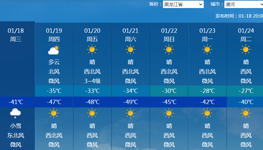 最低气温则普遍低于-20℃