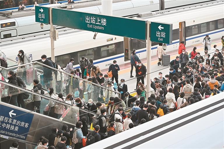 ▲深圳北站单日旅客到达量连续两日破历史纪录。 李文豪 摄