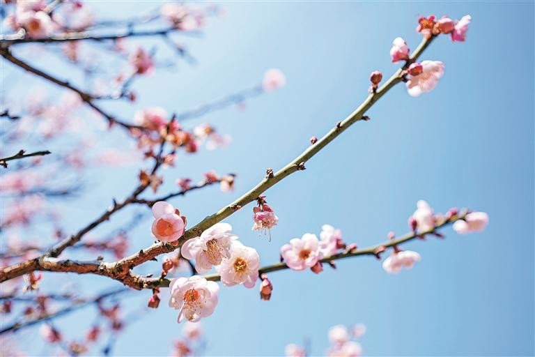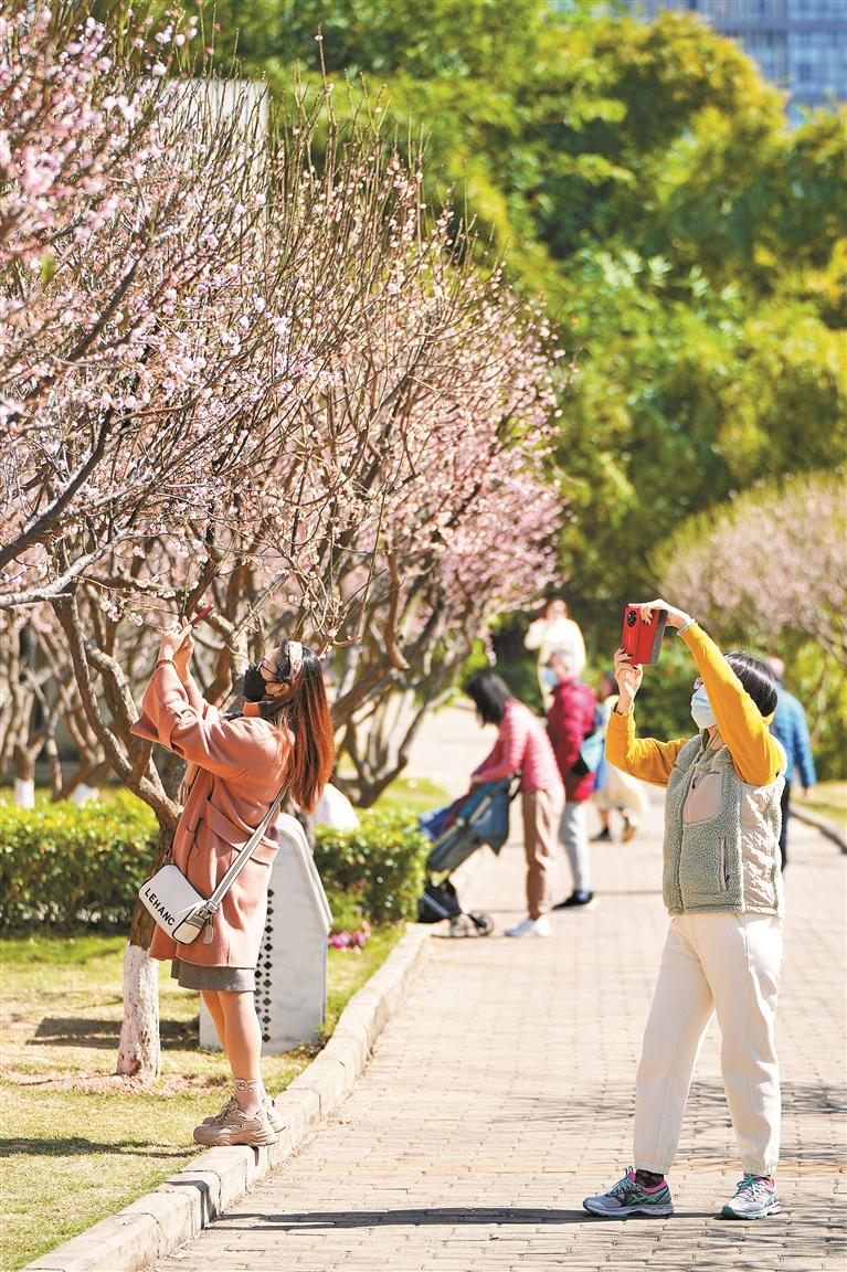 梅花竞相开放,市民在暖阳下观赏梅花。 本版图片均由 深圳晚报记者 陆颖 摄
