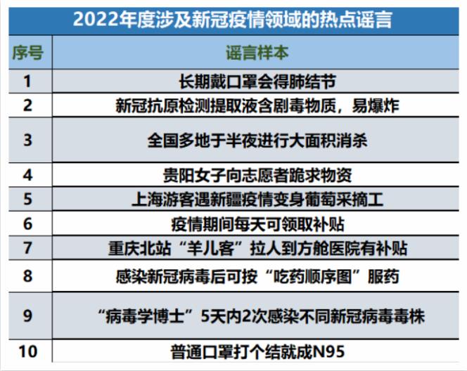 2022年,国际国内热点事件中,网络谣言“趁虚而入”,时有发酵,涉及疫情防控、公共政策、社会事件、医疗健康、自然现象等公众关心关切领域,可谓“套路百出”,令人深恶痛绝。针对网络谣言这一痼疾,中国互联网联合辟谣平台重拳出击,全年共受理网民谣言举报信息3万余条,汇集谣言样本和辟谣数据2.45万条,共发布各类辟谣稿件1.31万篇,推出了12期《打击网络谣言 共建清朗家园 中国互联网联合辟谣平台月度辟谣榜》、科学流言榜以及“涉防灾减灾辟谣榜”“涉化妆品辟谣榜”“涉高考高招辟谣榜”“涉食品安全辟谣榜”等行业辟谣榜单。这些谣言背后的真相您都了解了吗?中国互联网联合辟谣平台特此盘点解析,为您澄清谬误,传递事实真相。
