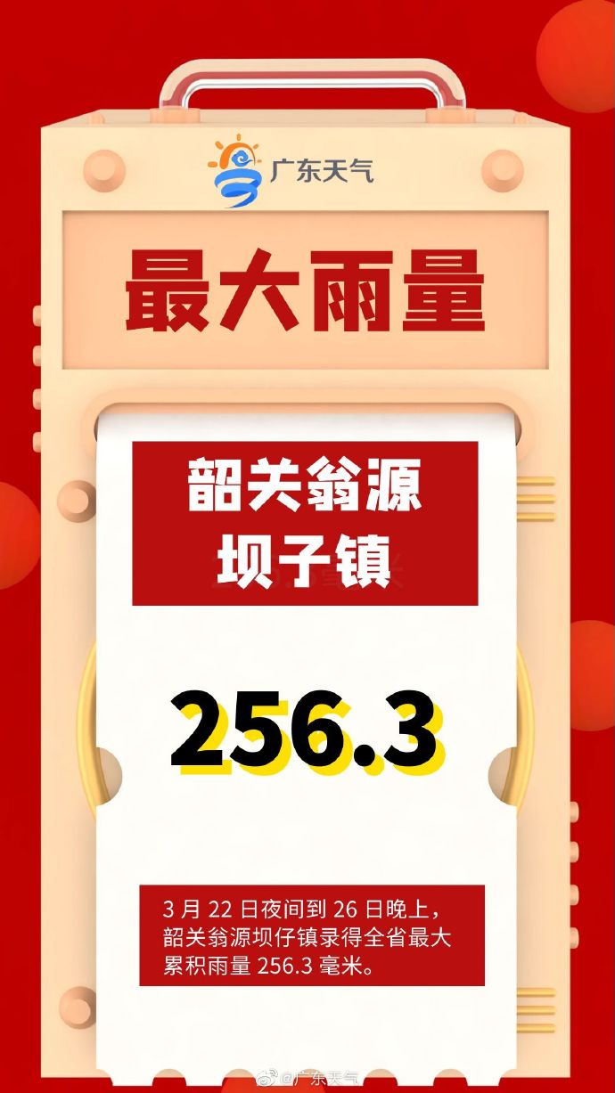 3月22日夜间到26日晚上,广东省出现了今年以来首场大范围强对流和强降水天气,粤北、粤西、珠三角市县先后出现了大雨到暴雨局部大暴雨,并伴有小时雨强20~40毫米的短时强降水、8级左右雷雨大风,韶关翁源坝仔镇录得全省最大累积雨量256.3毫米,全省14个市39个区县出现了小冰雹。