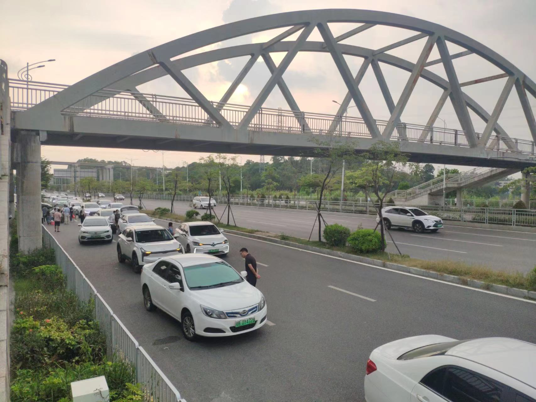 站前路是进出坪山站的主通道,也是坪山中心区往来龙岗重要通道,交通疏解恢复前受地铁施工、网约车违停等影响,站前路通行能力下降,节假日高峰期交通十分拥堵。