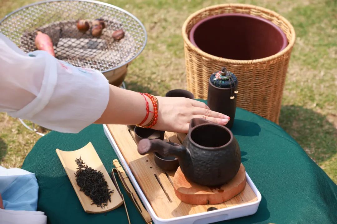 现场设有茶展区、茶艺区等,提供茶展、茶会、茶事等沉浸式茶文化体验。在特色主题茶展上,不仅有品类丰富的各色名茶,还有精美绝伦的茶具器盏、复古茶服等周边展示品;在系列茶文化活动中,可以围炉煮茶、品茗赏景,也能在品茶香、赏茶韵中论茶道、结茶缘。