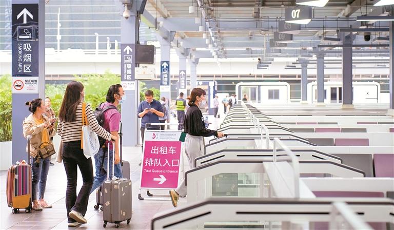 地面交通方面,深圳宝安国际机场前不久全新升级启用的机场出租车候车区也将迎来启用后的首个小长假客流高峰。升级改造后的机场出租车候车区在全国机场中创新试点了由绕行站立排队到“人人有座”的出租车侯乘模式,旅客排队最远步行距离由改造前的550米缩短至180米,客流高峰时期8个乘车点可供48辆出租车同时上客,单小时发车量增加至1200台次,整体运行效率可提高30%,有助于缓解“五一”期间纾运压力。目前,深圳机场已在国内到达及地面交通中心等旅客到达动线流程增加出租车候车区标识指引,方便旅客抵达机场后能快速前往出租车候车区候车。