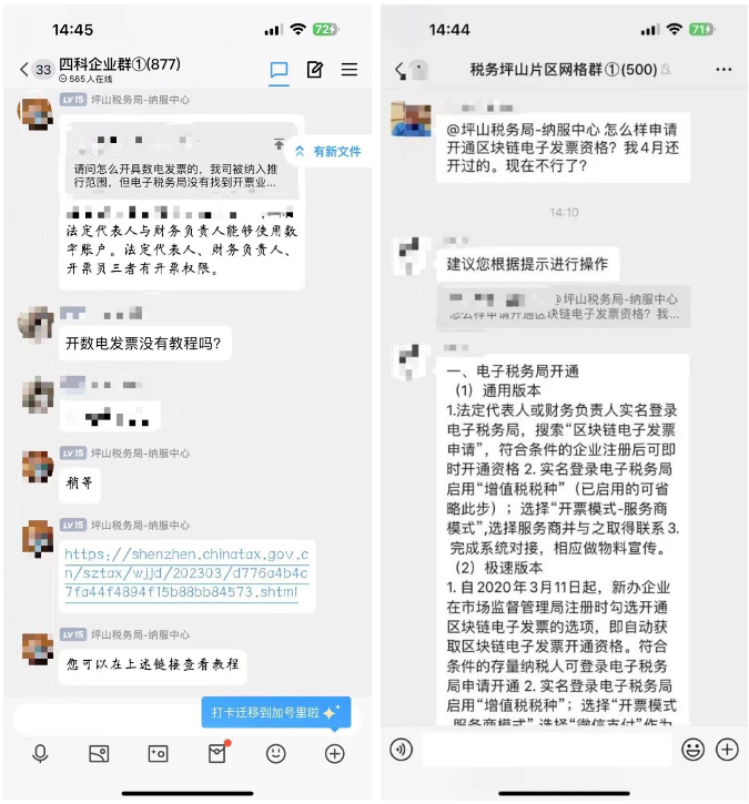 此外,坪山区税务局通过采取线上和线下相结合的方式,分级分类、因企施策做好税源管理相关服务,确保税收优惠政策直达末端。建立了多个数千人的QQ群与数百人微信群,涵盖了辖区近万户正常经营企业,设置“线上管理员”,及时解答企业提出的疑点、难点、热点问题,提升服务效率。同时在线下以税源管理直通车服务室为平台,搭建起与纳税人缴费人直通互联的沟通桥梁。