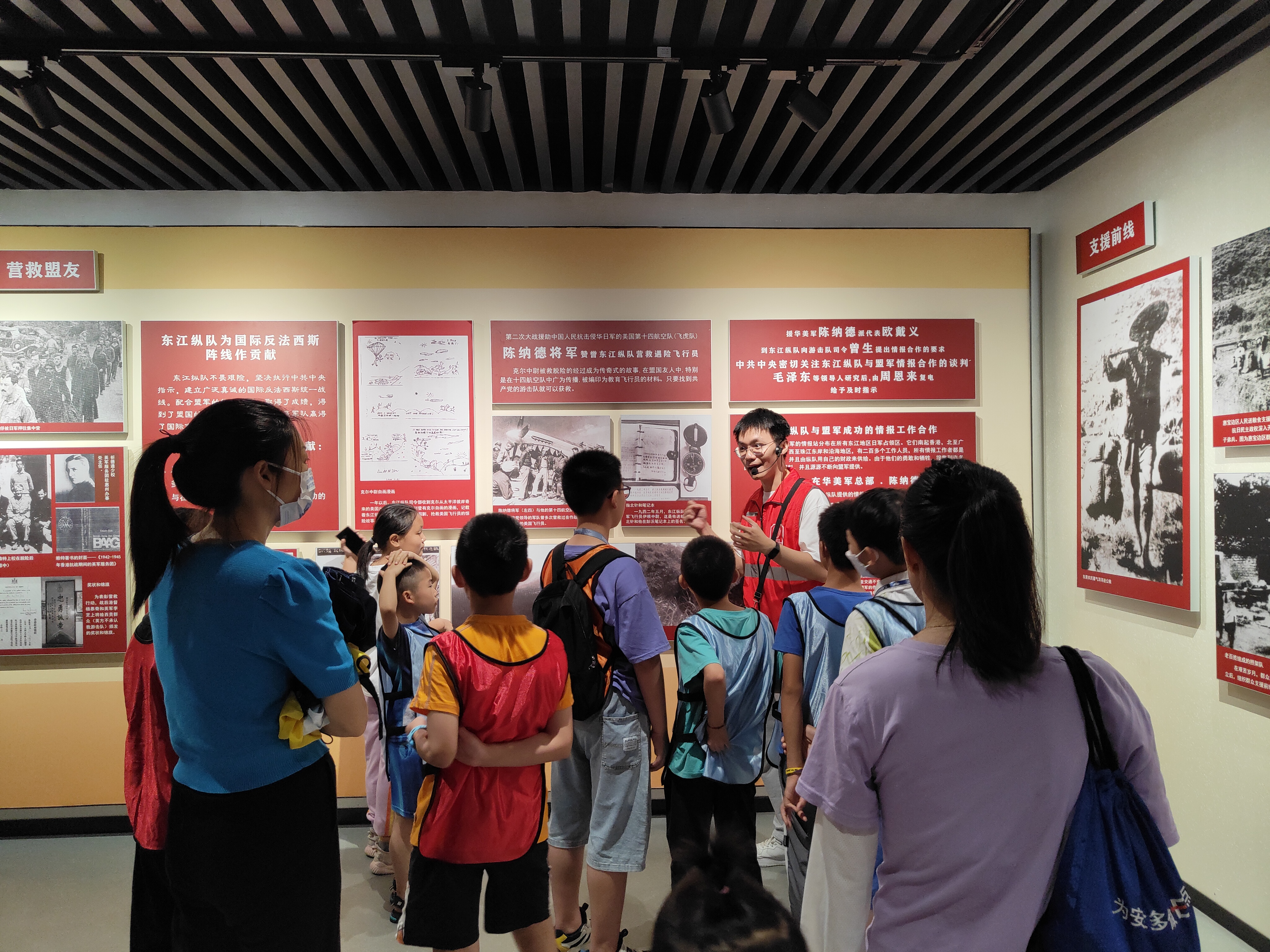 活动中,孩子们与家长走进东江纵队纪念馆依次参观了各个展厅,认真聆听讲解员介绍东江纵队的革命历史,观察馆内图文资料和实物,了解南粤儿女在抗日战争时期的英勇事迹。一段段珍贵的文字记载、一张张黑白照片、老旧水壶、报纸、枪支都承载着历史的记忆,蜡像场景更是生动地将东江纵队历史重现,充分展示着战士们爱国爱党、百折不挠的革命精神,大家深受感染和震撼。参与的青少年们纷纷表示,要向革命先烈学习,奋发向上、积极进取,争做一名新时代好少年。