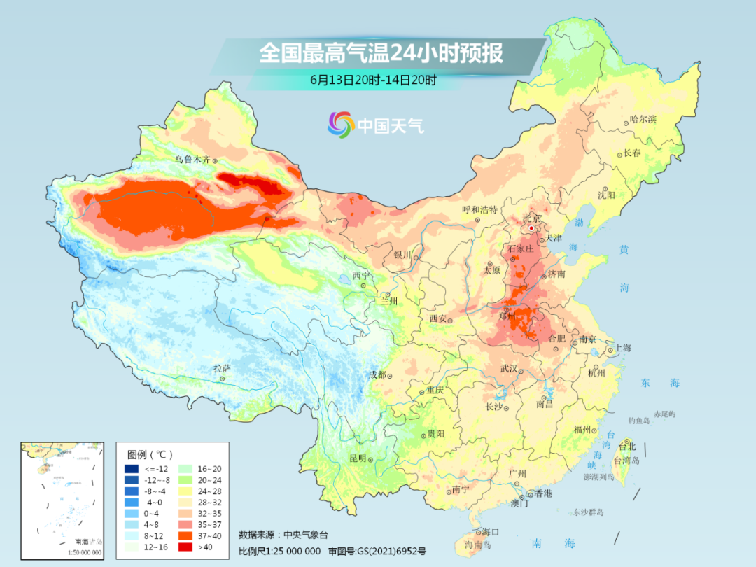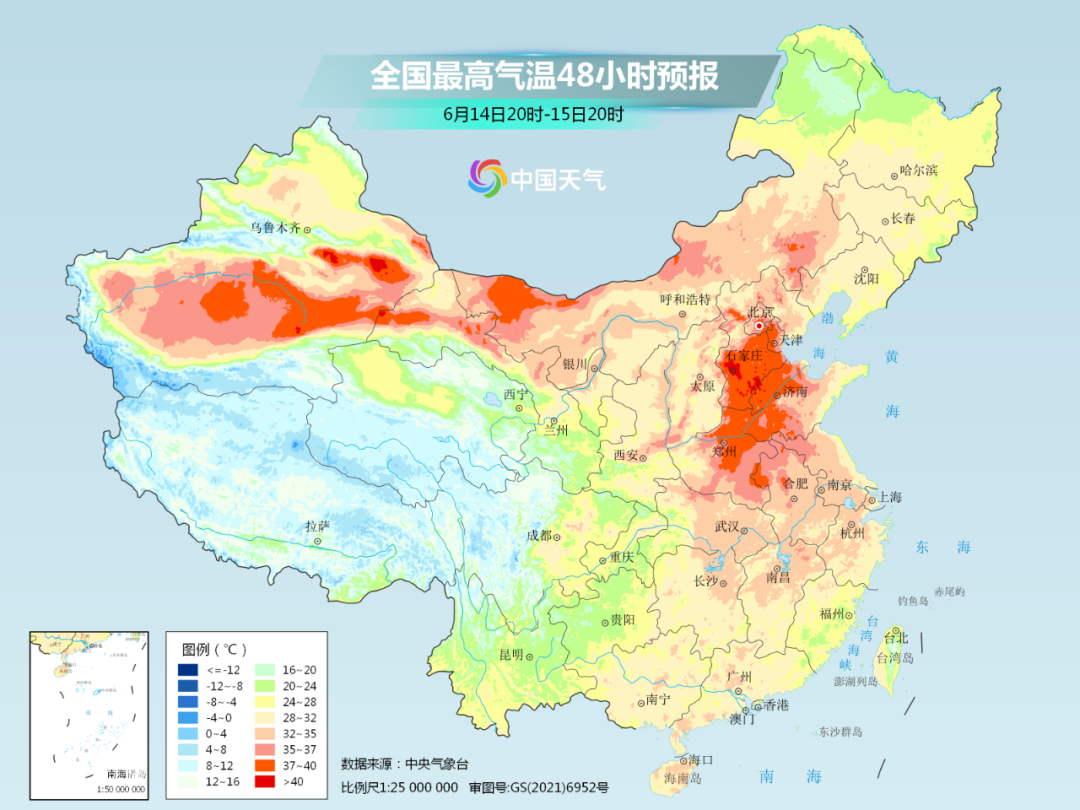 华南的龙舟水“泼”得正盛,北方此时却在经历一场轰轰烈烈的高温天气过程。未来三天,华北、黄淮及新疆、甘肃西部、内蒙古西部等地部分地区有35~39℃的高温天气,新疆吐鲁番最高气温将超过40℃。