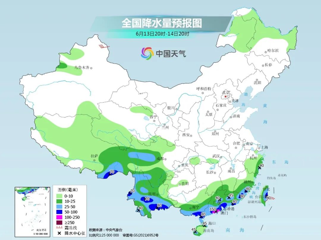 中央气象台预计,14日,广东中南部、广西南部、福建东南部、台湾岛东部以及云南南部和西部、西藏东南部等地部分地区有大到暴雨,其中,广东西南部沿海等地局地有大暴雨。