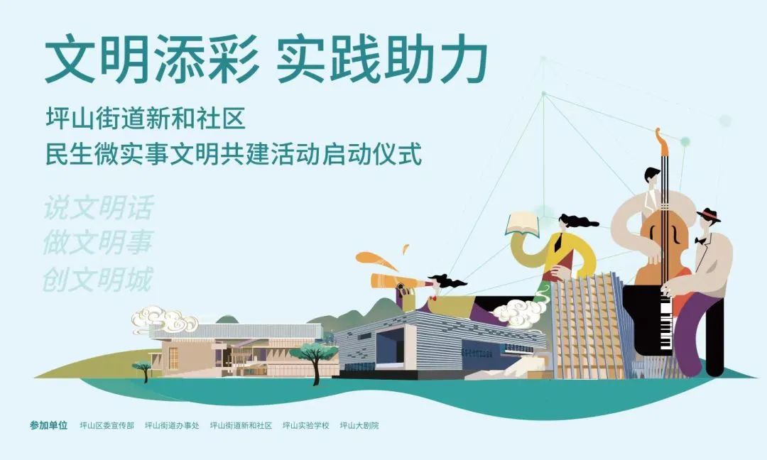 6月14日,“文明添彩 实践助力”2023年民生微实事文明共建活动启动仪式在坪山大剧院举行。坪山区委常委、宣传部部长邓艳东,区文明办、坪山街道新和社区、坪山实验学校、坪山大剧院相关负责人及学校教师、学生、家长代表出席活动。