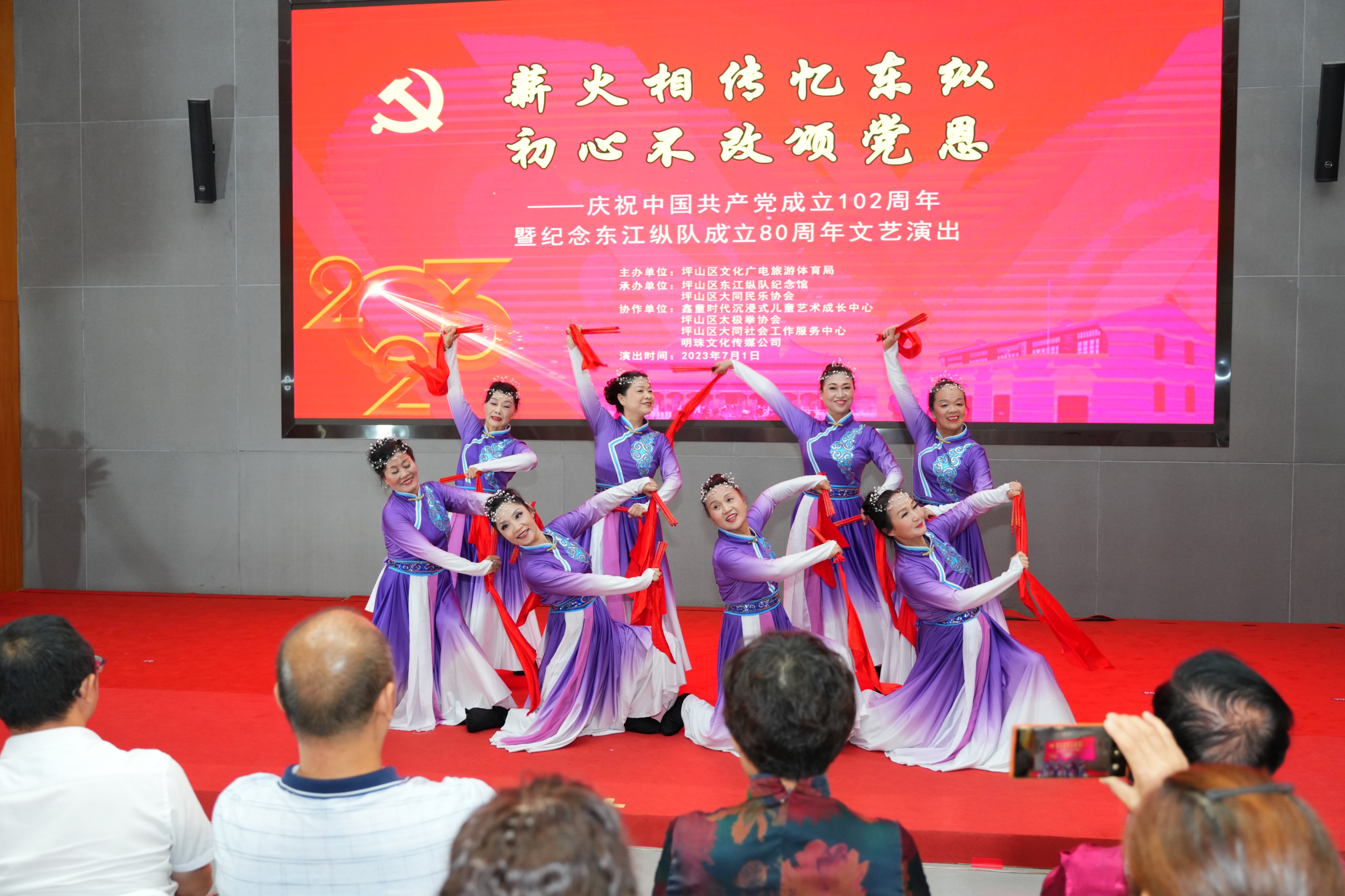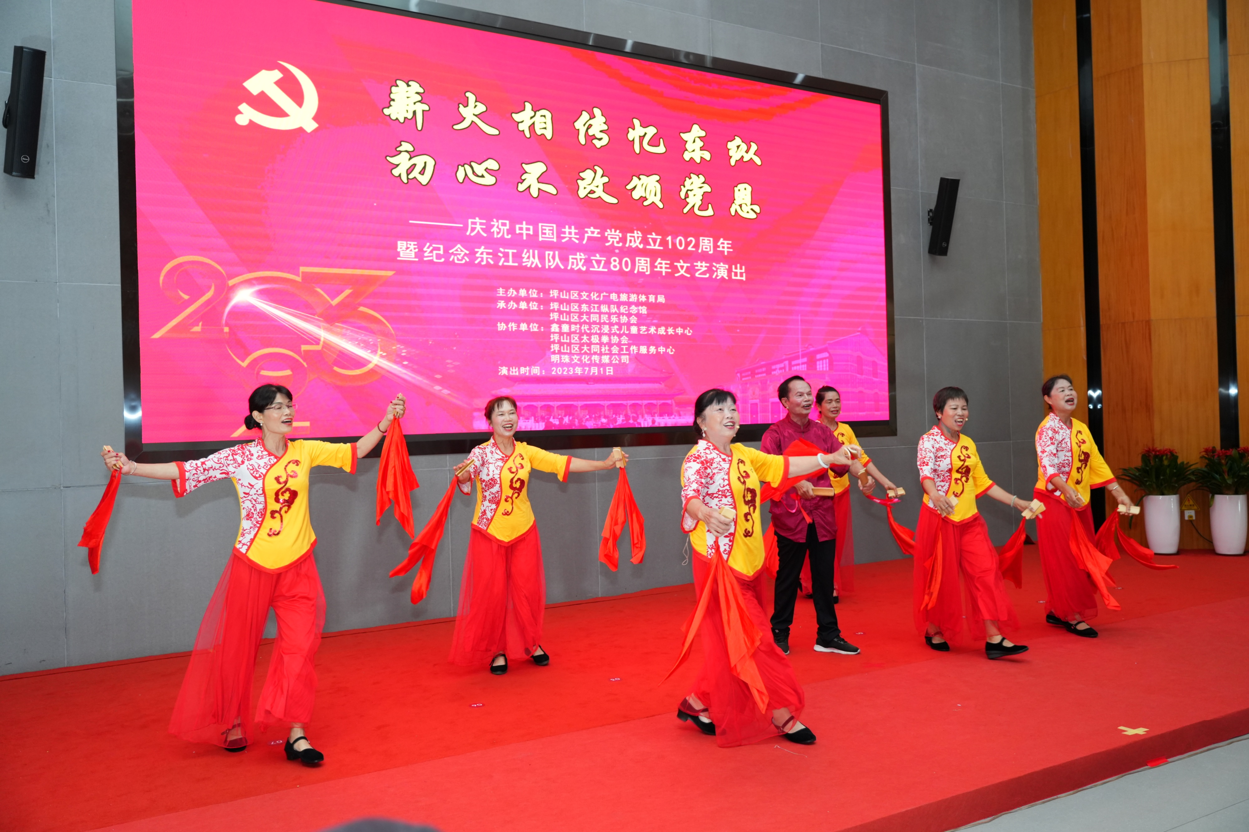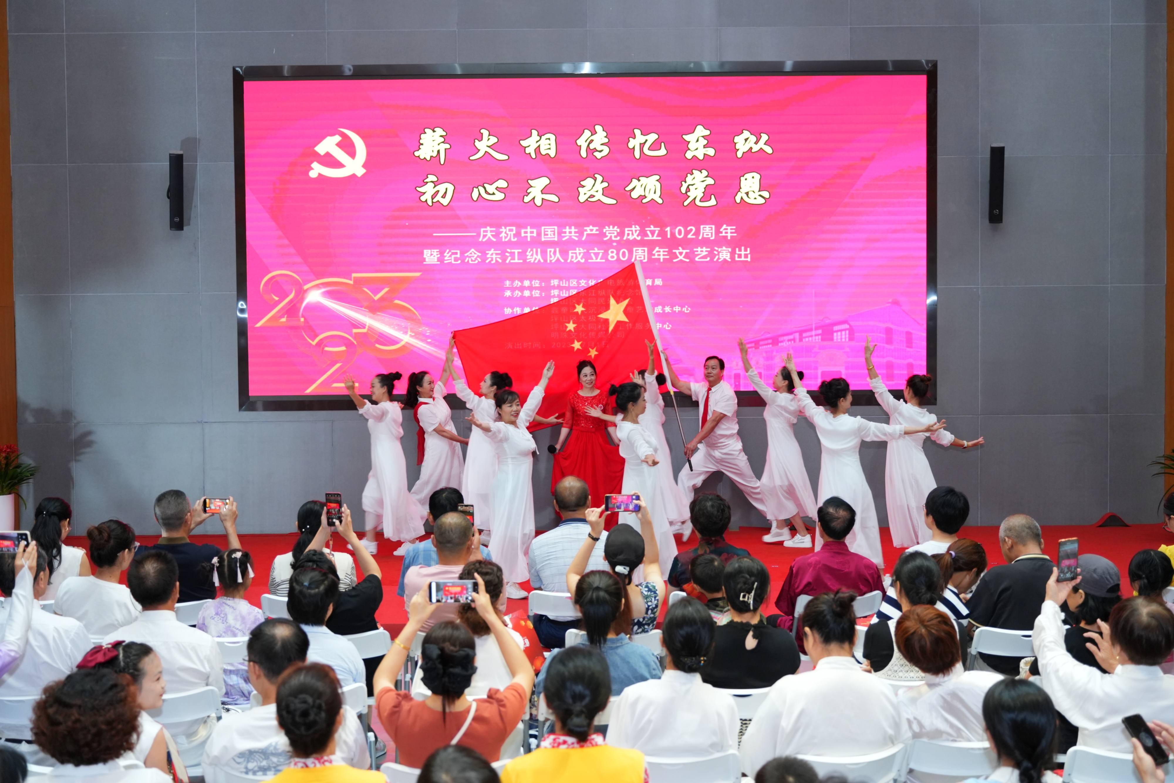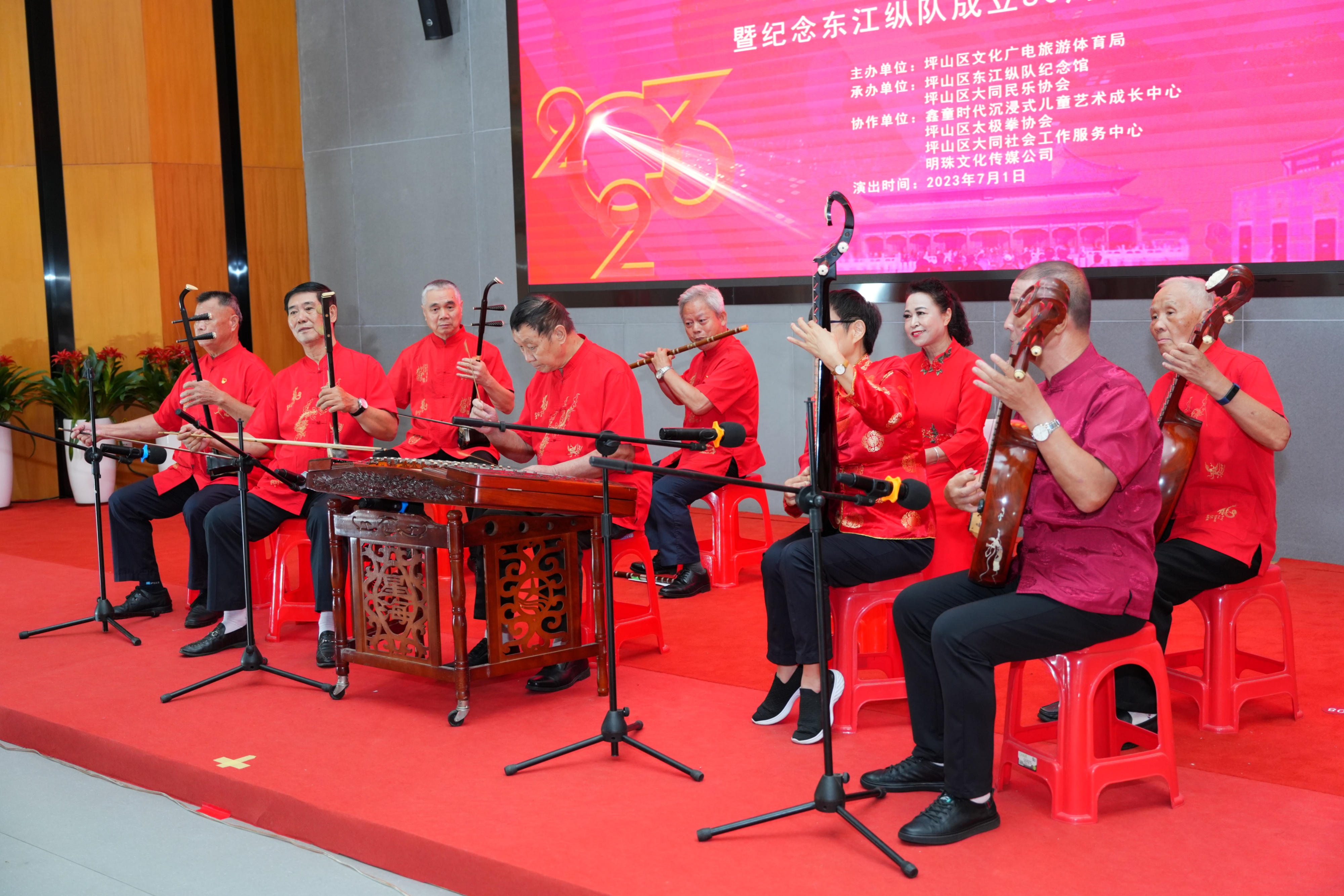 深圳新闻网2023年7月3日讯 (记者 宫雨婷)7月1日,由坪山区文化广电旅游体育局主办,深圳东江纵队纪念馆、坪山区大同民乐协会党支部联合承办的“薪火相传忆东纵 初心不忘颂党恩——庆祝中国共产党成立102周年暨纪念东江纵队成立80周年文艺演出”在深圳东江纵队纪念馆举行。