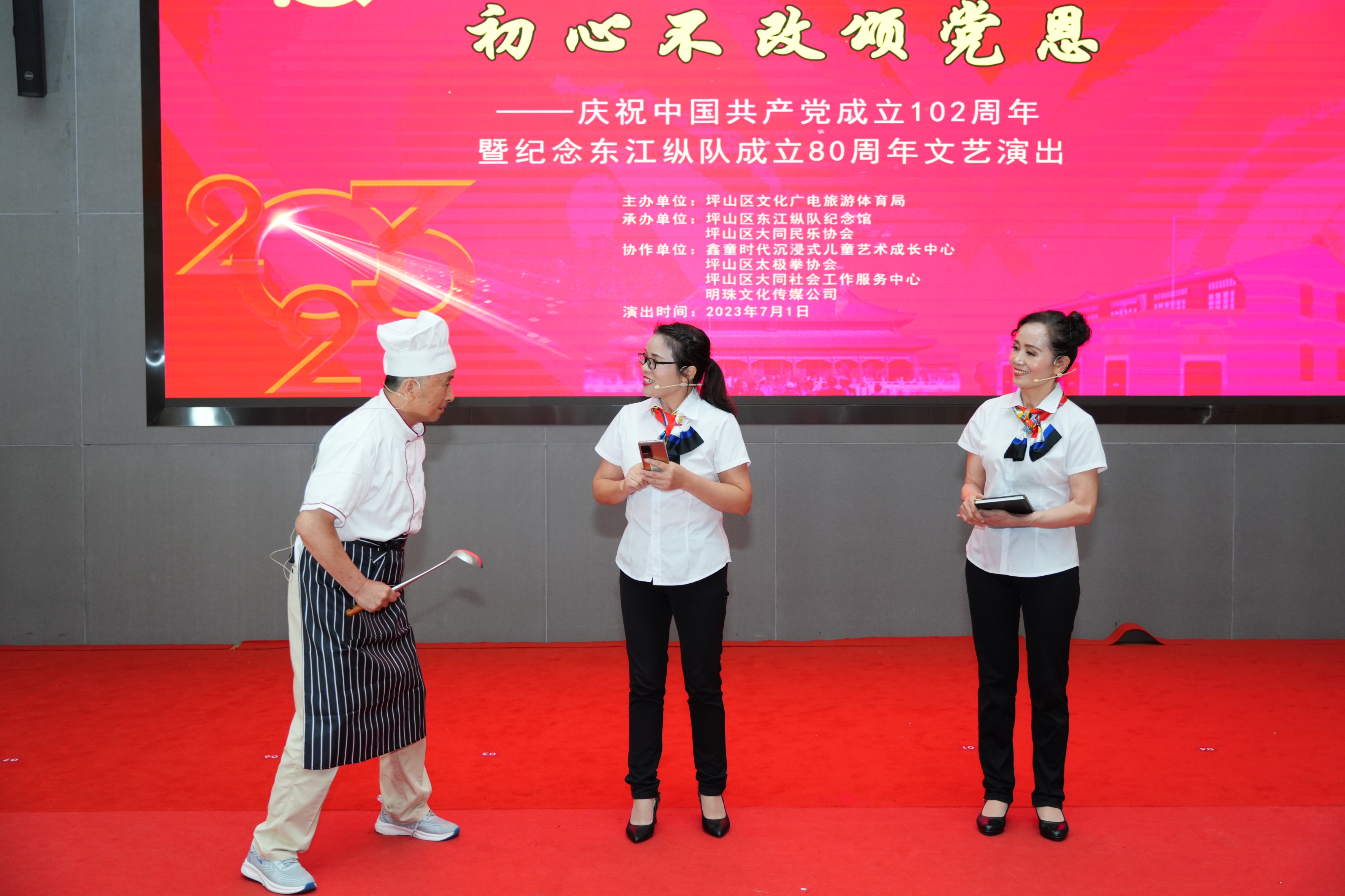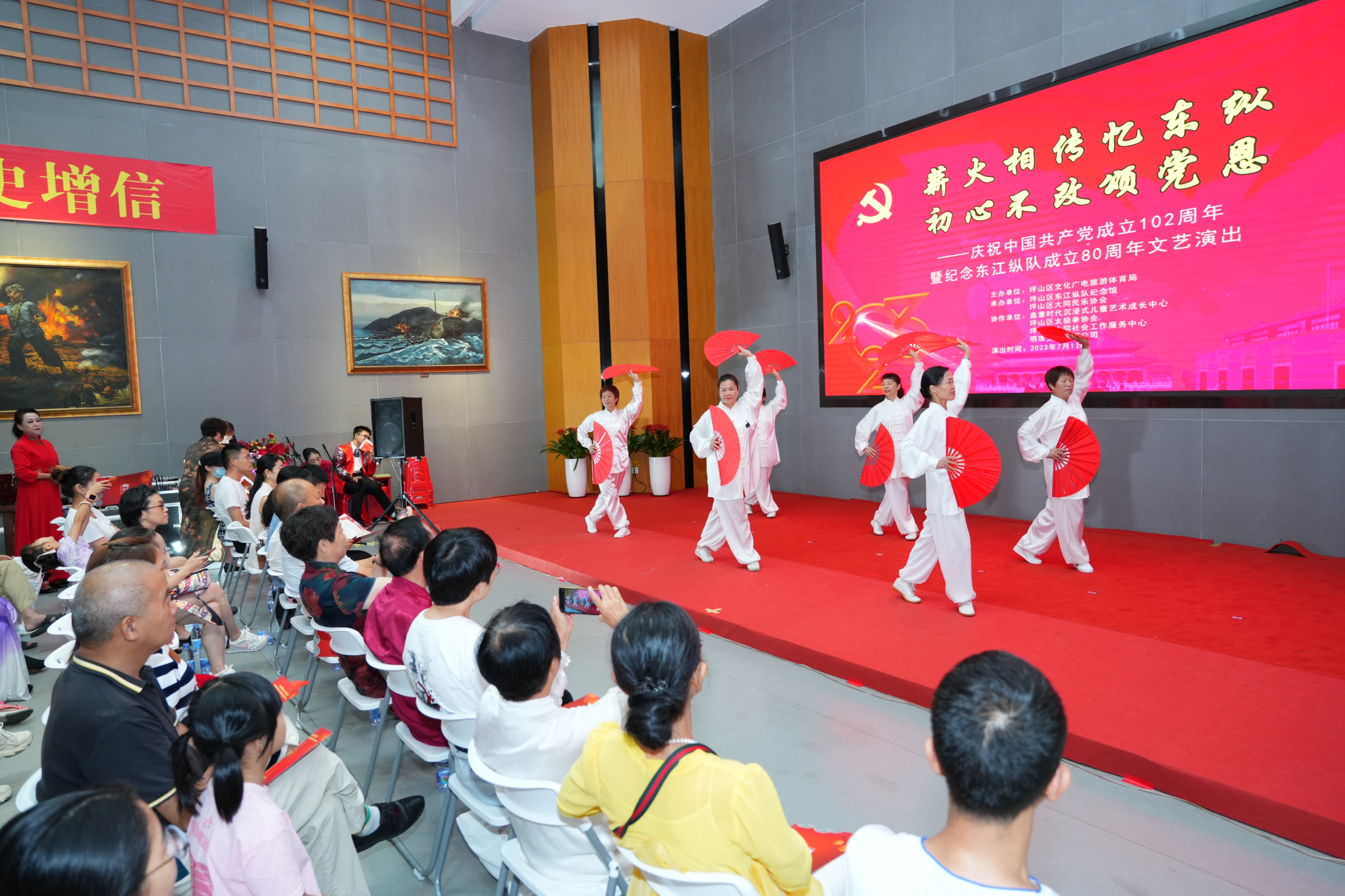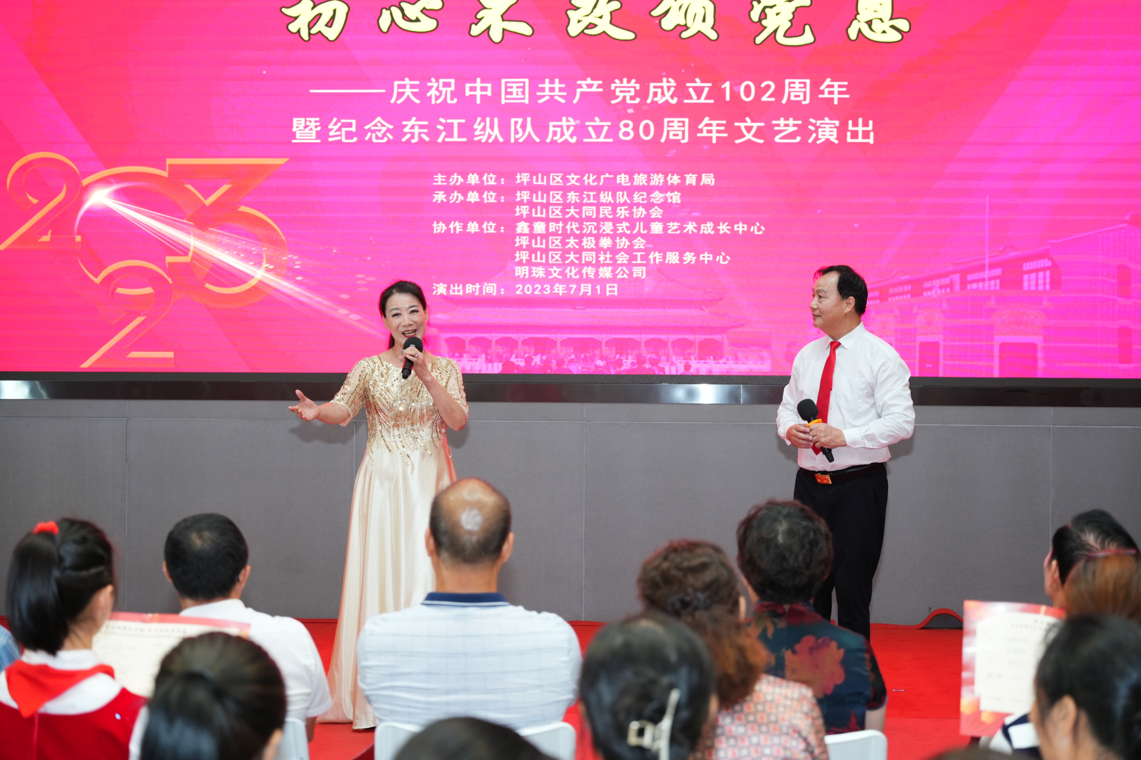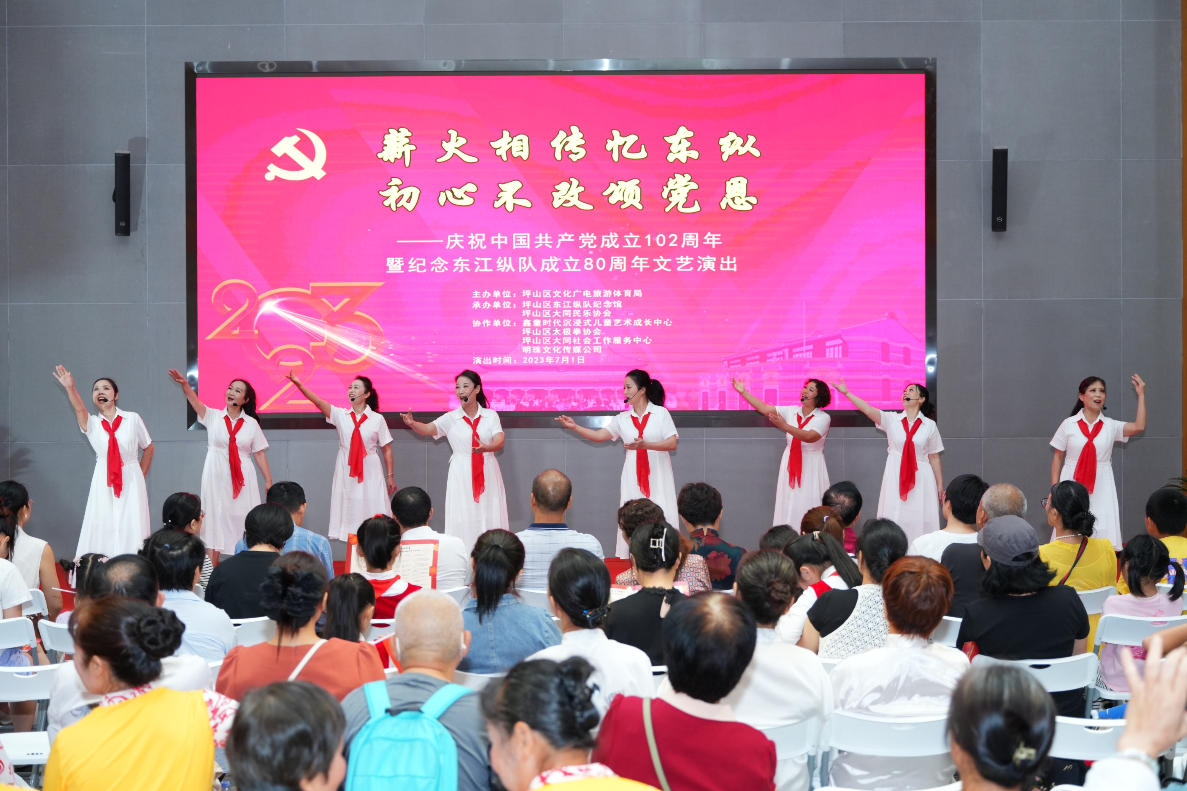 深圳新闻网2023年7月3日讯 (记者 宫雨婷)7月1日,由坪山区文化广电旅游体育局主办,深圳东江纵队纪念馆、坪山区大同民乐协会党支部联合承办的“薪火相传忆东纵 初心不忘颂党恩——庆祝中国共产党成立102周年暨纪念东江纵队成立80周年文艺演出”在深圳东江纵队纪念馆举行。