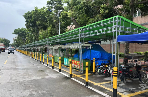 中部格内同富裕工业区周边人流量大,摊贩占道经营问题突出,站格市容环境整治组长巡查发现后,立刻上报社区及街道市政执法部门,很快就在富业一路增设了一处临时疏导点,既解决流动摊贩与周边职工生产生活需求,又有效缓解了乱摆卖管理难的问题。