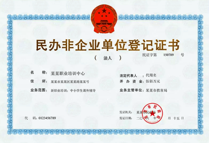 ▲民办非企业单位登记证书样板