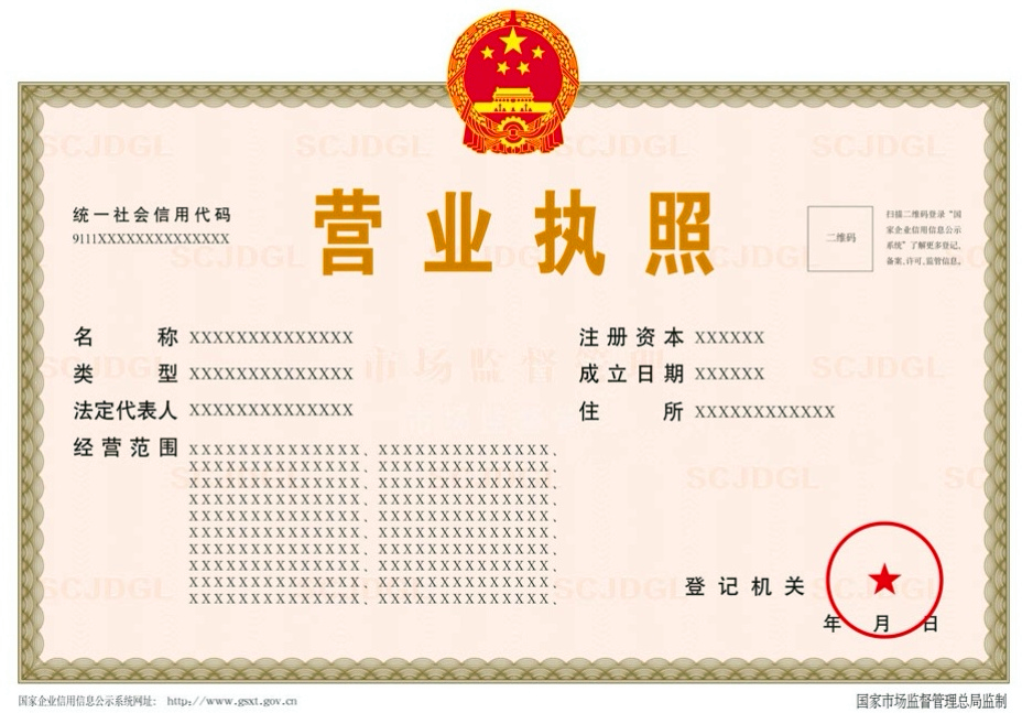 ▲营业执照样板