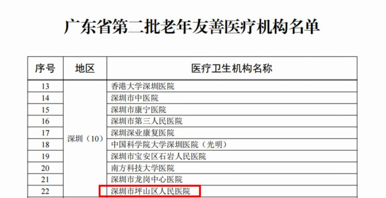 深圳新闻网2023年7月4日讯(记者 肖艺嘉 通讯员 陈辉煌 刘启程)近日,第二批广东省老年友善医疗机构名单公布,深圳市坪山区人民医院顺利通过评审,荣获“广东省老年友善医疗机构”的称号。