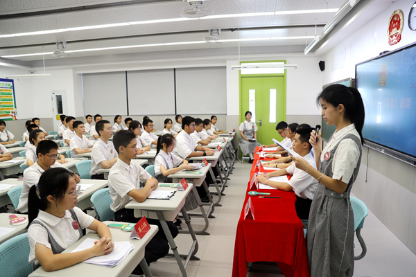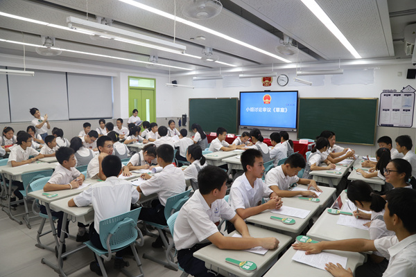 深圳新闻网2023年7月8日讯(记者 曹园芳 邱嘉熙)7月7日,坪山区东部湾区实验学校开展“模拟区人大常委会会议进校园”主题活动,同学们围绕“校园文化建设”这一主题展开探讨与思考,为学校校园文化建设提出自己的想法。