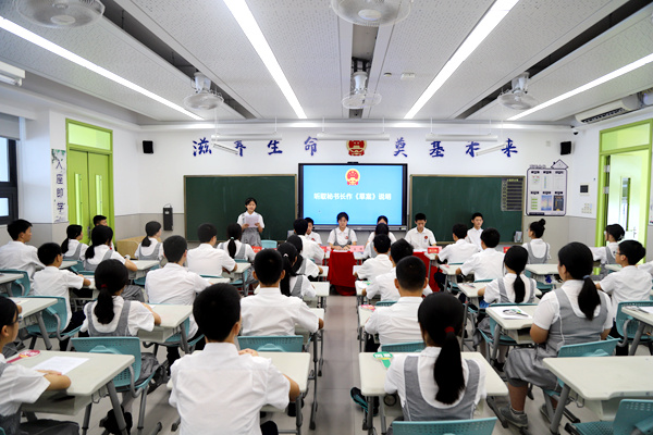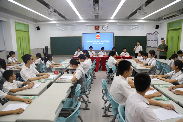 东部湾区实验学校八年级年级长张云告诉记者,该活动紧跟校园发展需求,模拟“区人大常委会会议”议事程序和会议制度,学生通过亲身感受和实际模拟,了解代表们是如何行使权利、如何反映、解决现实生活中的问题,加深对人大代表权利及职责的体悟,增强他们参与校园民主治理的意识和能力。她指出,让学生参与到校园文化建设中来,学生能够更加爱惜学校,更有“家”的温暖,从提案到实施,学生也感受到“社会角色”的重要性。