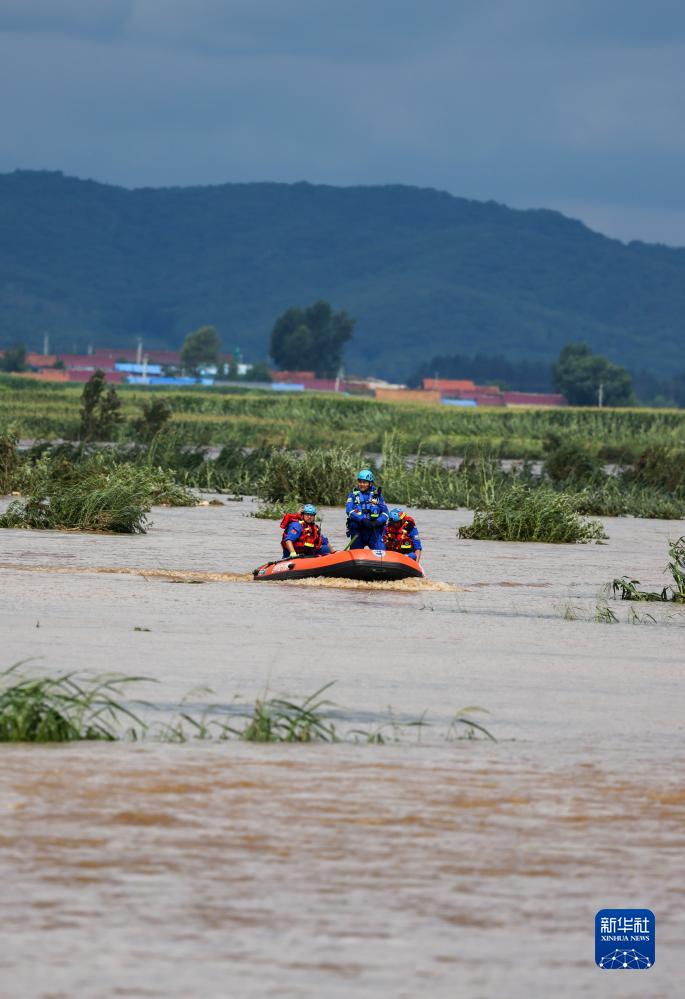 8月5日,吉林市蓝天救援队的救援人员进行水面搜救工作。