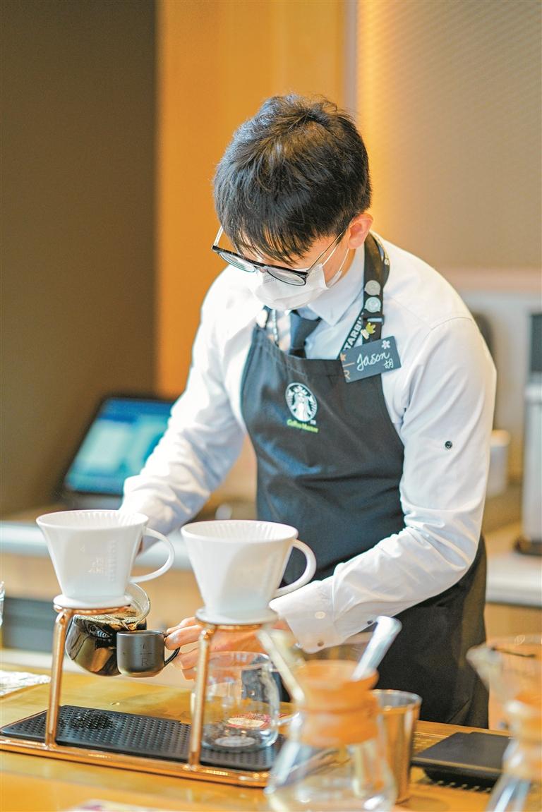▲星巴克咖啡店工作人员现场制作咖啡。深圳晚报记者 陆颖 摄