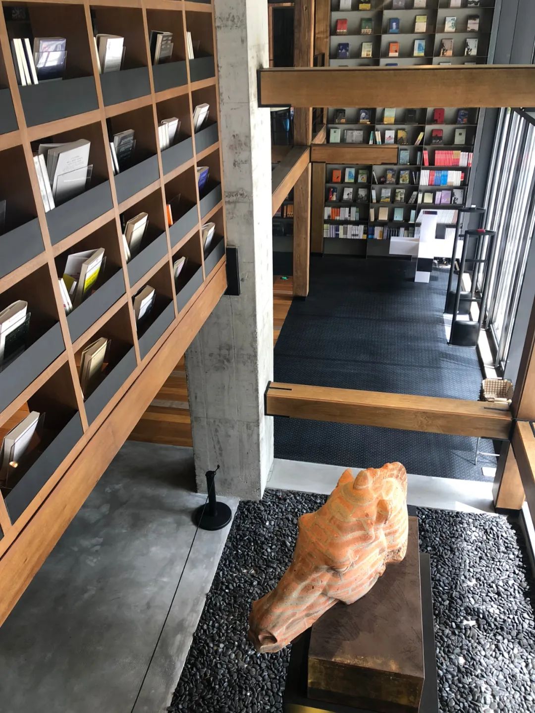 亦山——取自绵延数里环抱坪山的马峦山。傍山而城,亦城亦山,店内采用古老的穿斗式房屋设计、部分墙面使用的夯土砌成,巨型书墙、中央咖啡、文创周边……每一个都不容错过。
