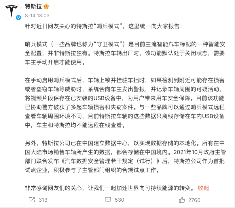 中国市场方面,特斯拉公司称已在中国建立数据中心,所有在中国大陆市场销售车辆所产生的数据,都会储存在中国境内。通过加强车辆数据的本地化储存和保护,特斯拉可以更好地遵守中国相关法律法规,有效保障用户的数据安全和隐私权益,同时可以使特斯拉更加贴近中国用户,带来更好的用户体验。(读特融媒体记者 胡清文(实习))