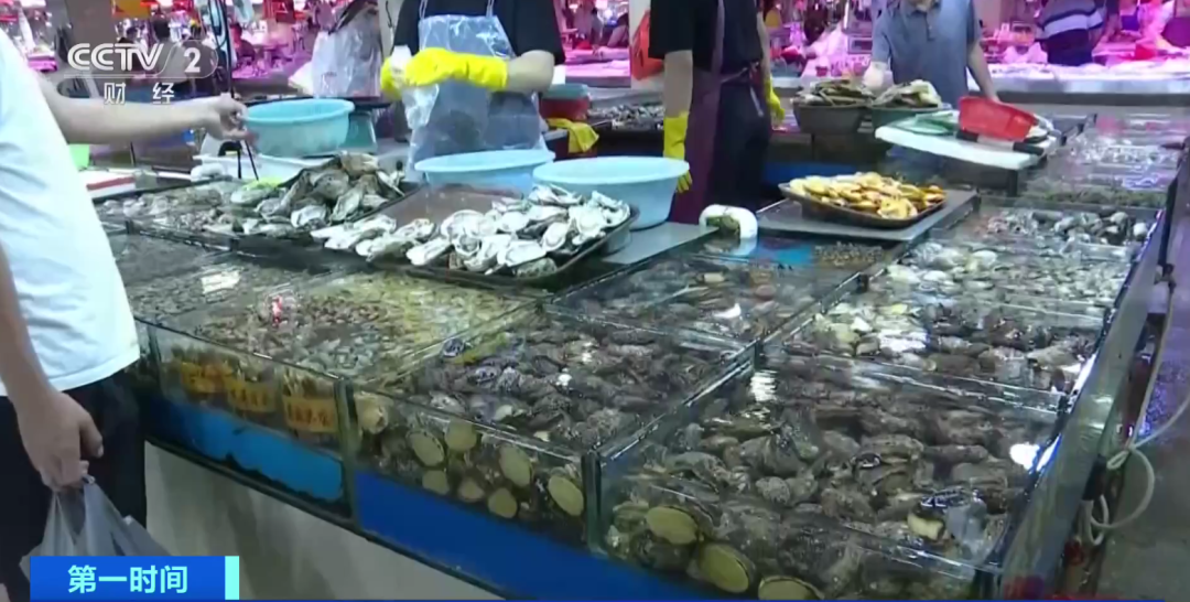 清晨六点,广西南宁海鲜批发市场已是一派热闹景象,虾类、蟹类、贝类、鱼类等各类海鲜应有尽有。