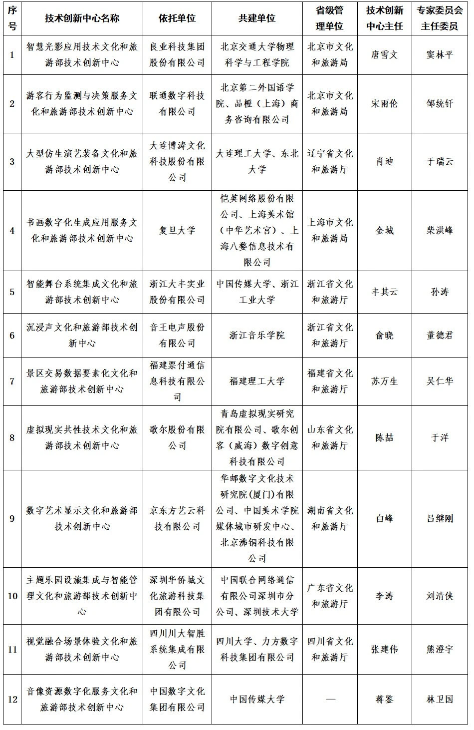 首批文化和旅游部技术创新中心建设名单主要涉及演艺装备、游乐设施、智慧旅游与景区建设、艺术显示与交互体验、文化数字化与智能化等特色鲜明、应用性强的场景,依托单位既有行业知名企业,又有国内重点高校。建设期不超过1年,建设完成后将按程序组织验收。