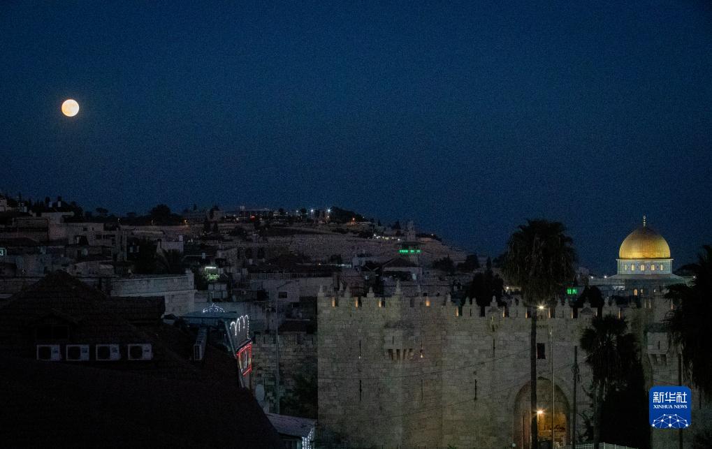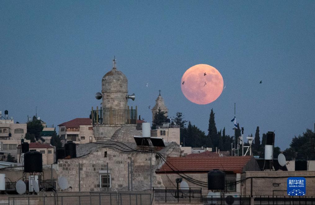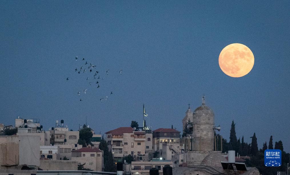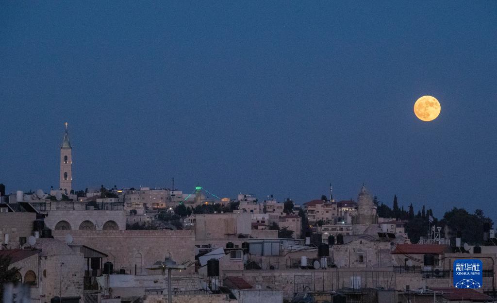 这是8月30日在耶路撒冷拍摄的“超级月亮”。新华社记者 陈君清 摄