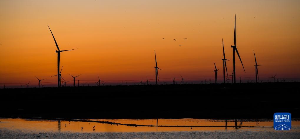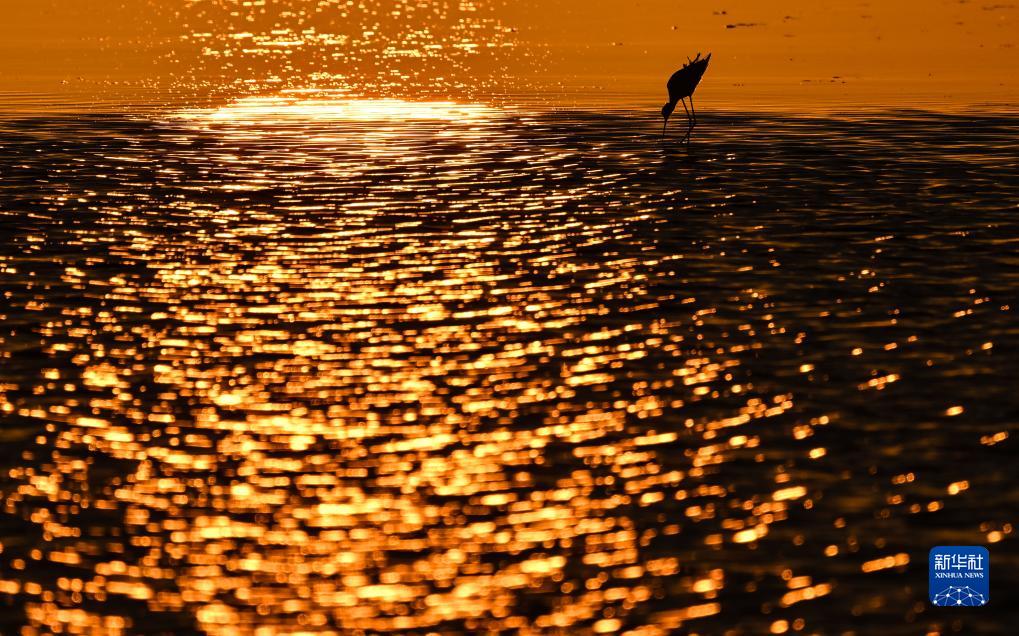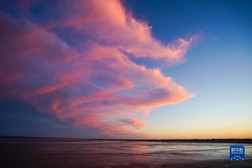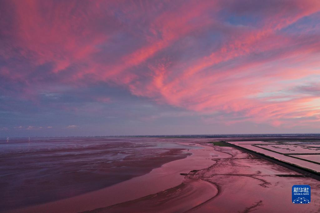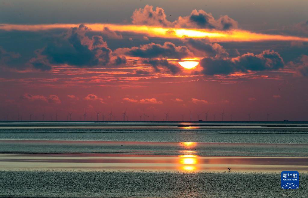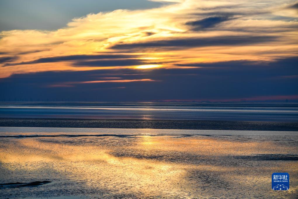 盐城东台条子泥湿地日落时分景色(2023年8月31日摄)。新华社记者 季春鹏 摄