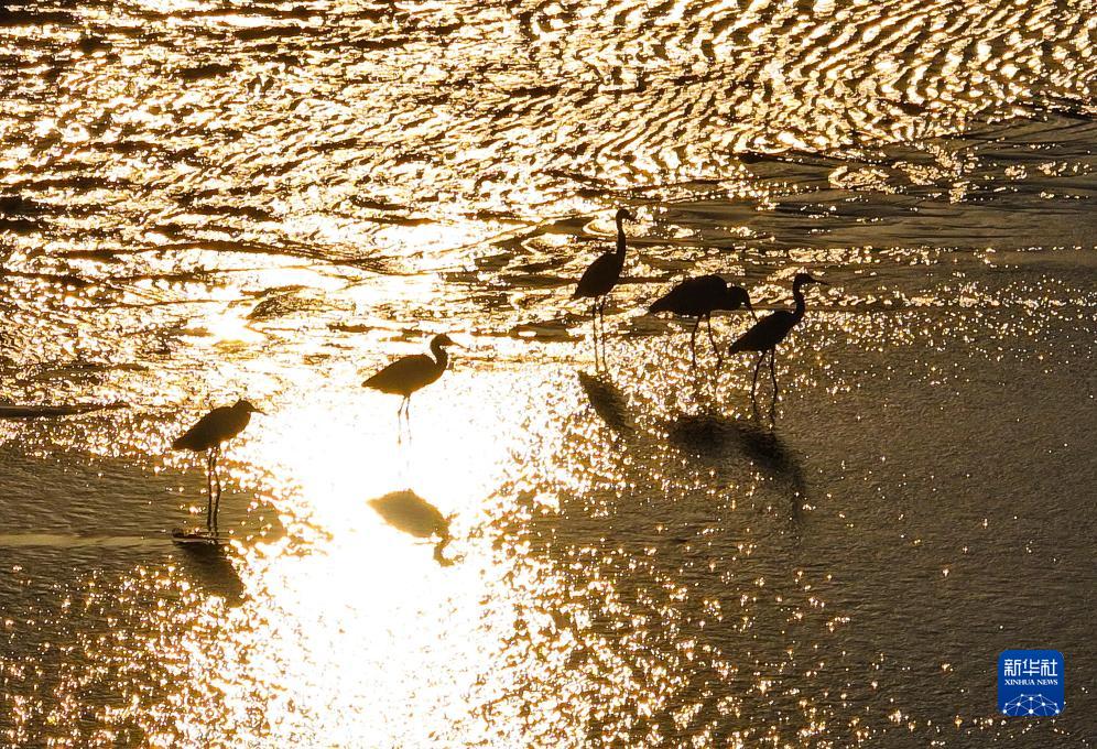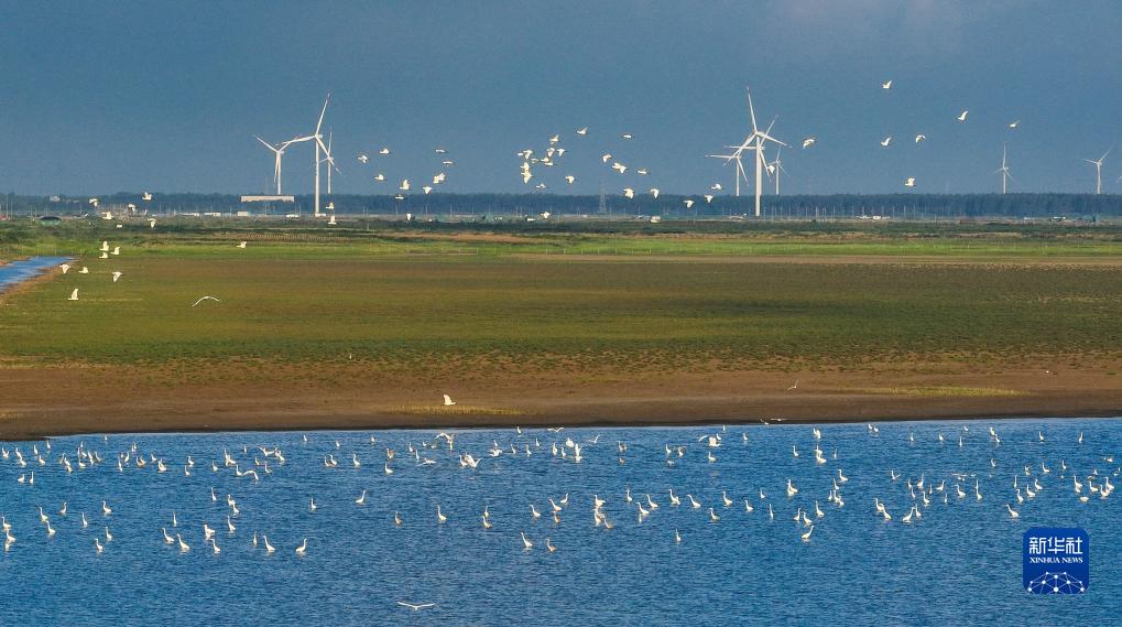群鸟栖息在盐城东台条子泥湿地(2023年8月20日摄)。新华社记者 季春鹏 摄