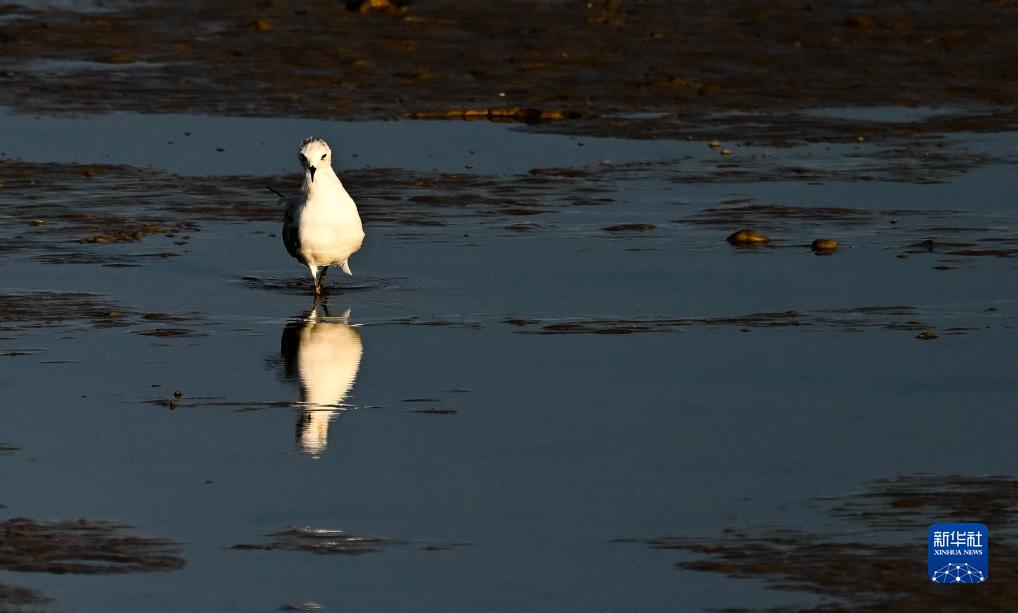 鸟儿栖息在盐城东台条子泥湿地滩涂(2023年8月31日摄)。新华社记者 季春鹏 摄